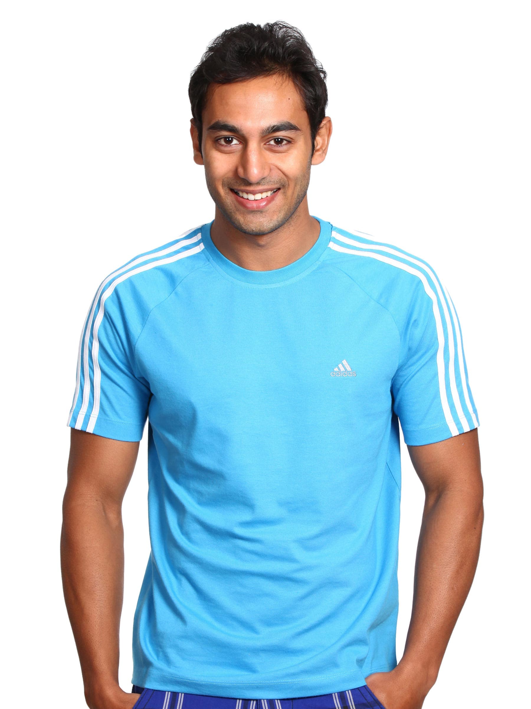 ADIDAS Men Stripe Blue T-shirt