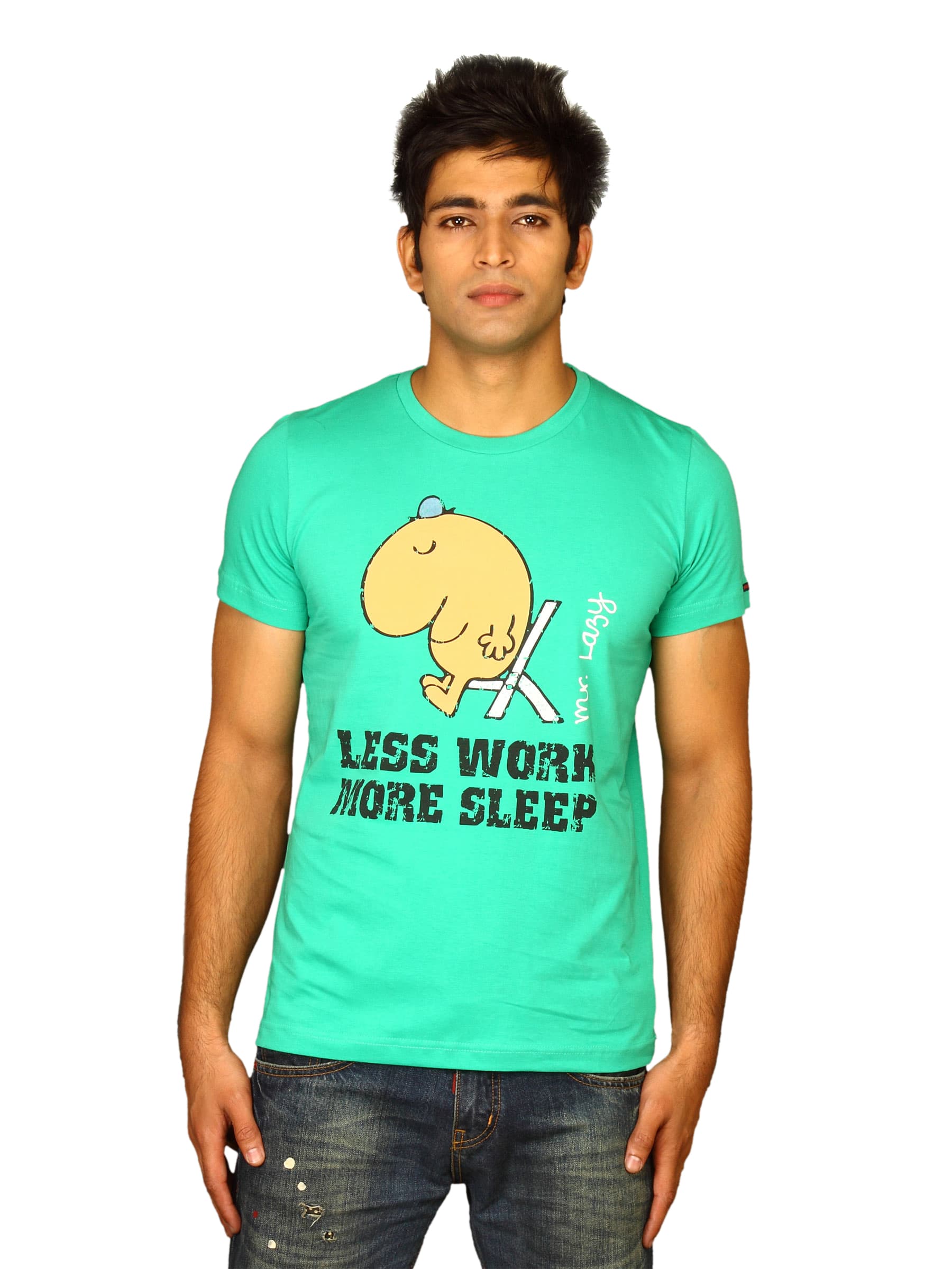 Mr.Men Men's Less Work More Sleep Green T-shirt